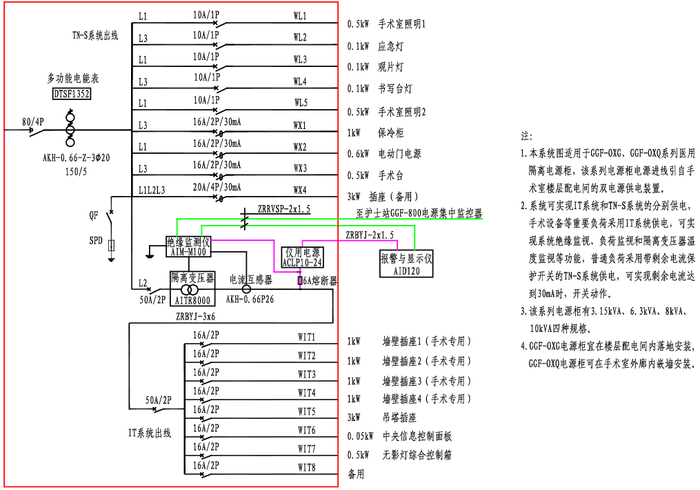 GGF-OXG、GGF-OXQ醫用隔離電源柜系統接線圖