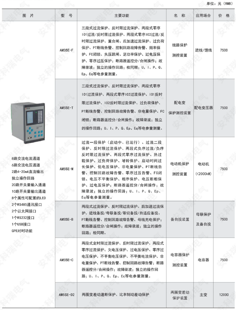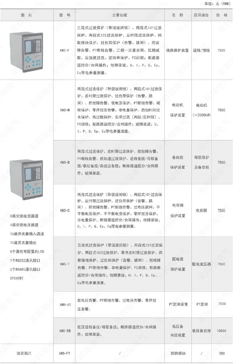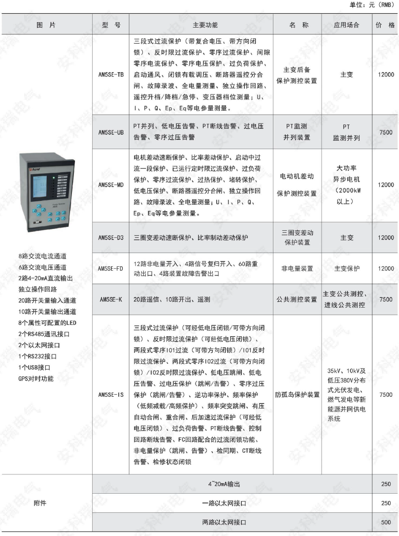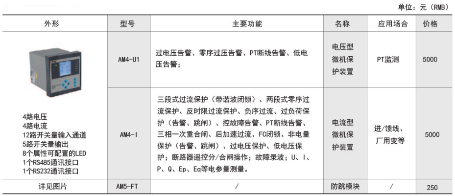 產(chǎn)品簡介:AM系列微機(jī)保護(hù)測(cè)控裝置集保護(hù)、測(cè)量、控制于一體,適用于35kV及以下電壓等級(jí)的用戶終端變電站(所),可實(shí)現(xiàn)用戶變電站的全面保護(hù)和測(cè)控。