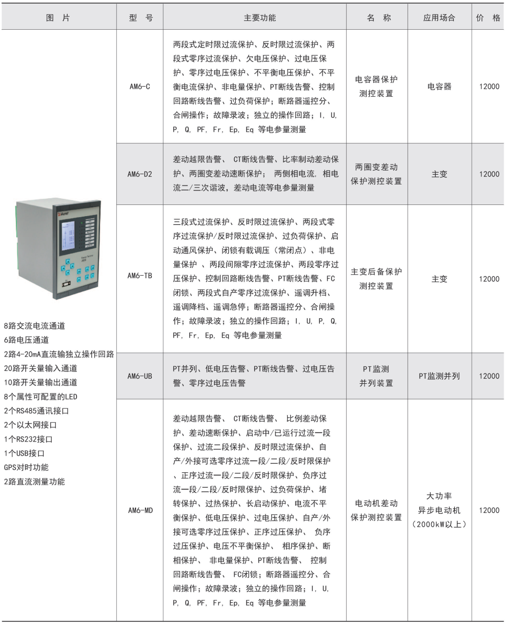 AM系列微機(jī)保護(hù)測(cè)控裝置集保護(hù)、測(cè)量、控制于一體,適用于35kV及以下電壓等級(jí)的用戶終端變電站(所),可實(shí)現(xiàn)用戶變電站的保護(hù)和測(cè)控。