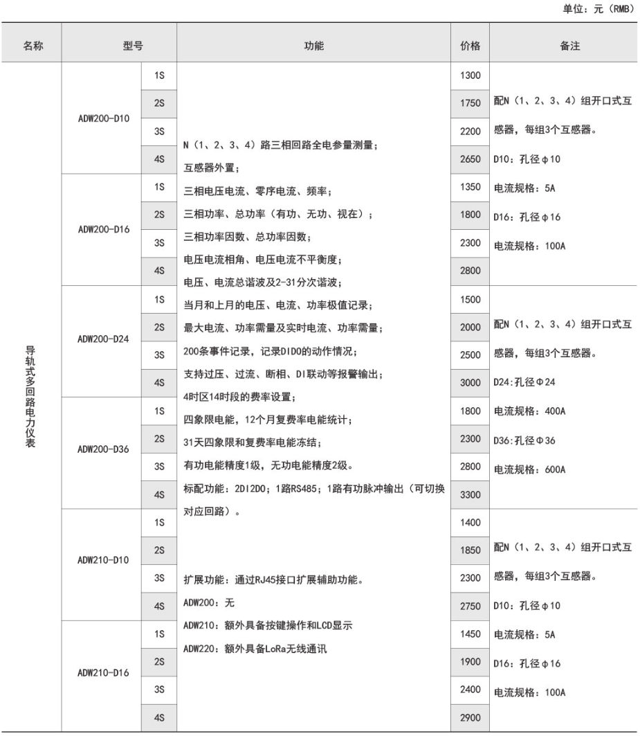 ADW2xx系列導(dǎo)軌式多回路電力儀表主要用于低壓三相回路全電參量測(cè)量,同時(shí)可選擇四個(gè)回路的電流輸入??芍苯踊蜷g接測(cè)量電壓、電流、功率、功率因數(shù)、相角、不平衡度、諧波等參數(shù)。 還可通過其RJ45接口擴(kuò)展輔助功能,實(shí)現(xiàn)DI、DO、測(cè)溫、剩余電流測(cè)量,以及2G、4G、LoRa、LoRaWan、NB-Lot無線通信功能。