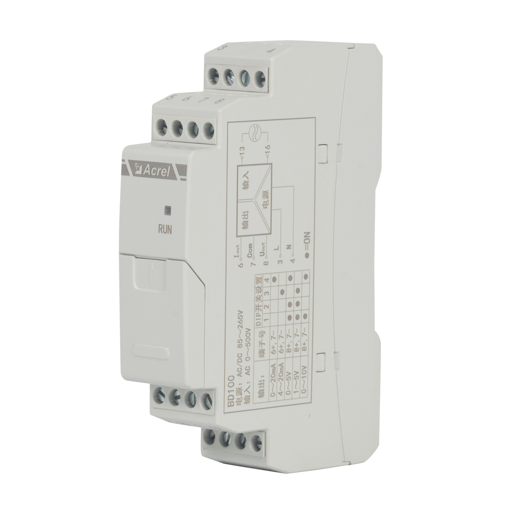 BD100系列電量變送器是一種將電網(wǎng)中的電流、電壓電參量,經(jīng)隔離變送成線性的直流模擬信號或數(shù)字信號裝置。產(chǎn)品符合GB/T13850-1998、IEC-688 標準。