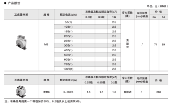 準確級及相應額定負荷(VA) |