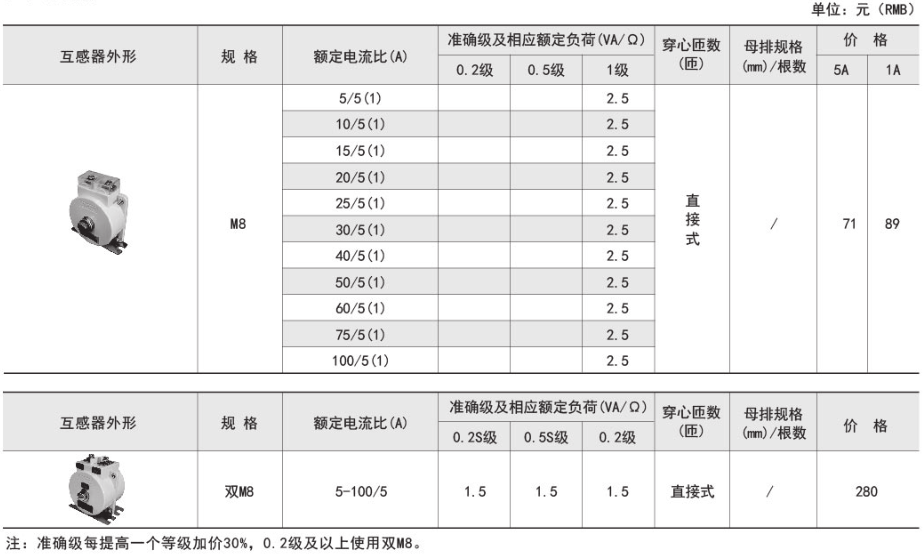 準確級及相應額定負荷(VA/Ω) |