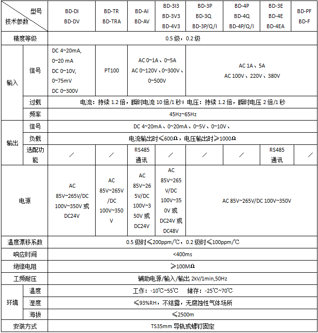 三相四線,測量電流、有功功率、無功功率,隔離變送輸出模擬信號(hào) |