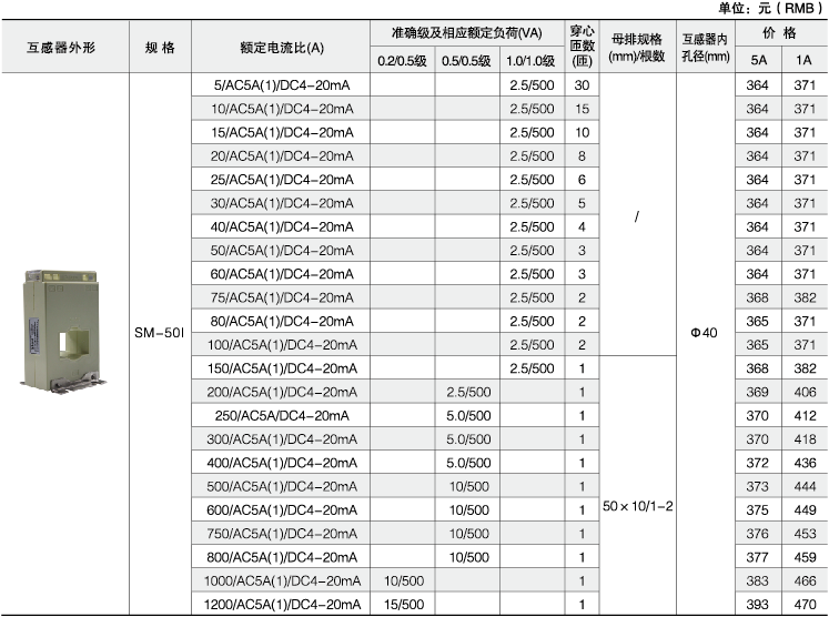 具體型號(hào):AKH-0.66/SM SM-50I 100/AC5A/DC4-20mA