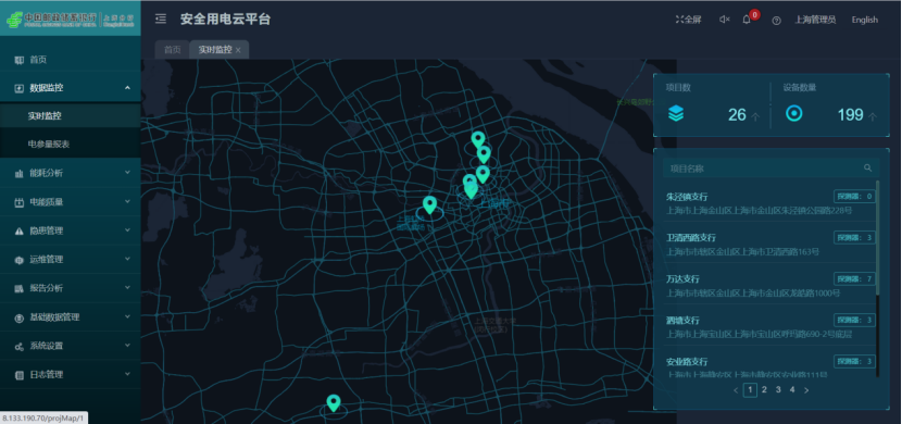 上海郵政儲蓄銀行項目安全用電云平臺,由分行辦公大樓及德平路289號浦東郵政大廈等13棟建筑大廈、支行組成。銀行為提升消防安全管理水平,加強對電氣火災的防范力度,在分行推進安全用電監測系統建設工作。