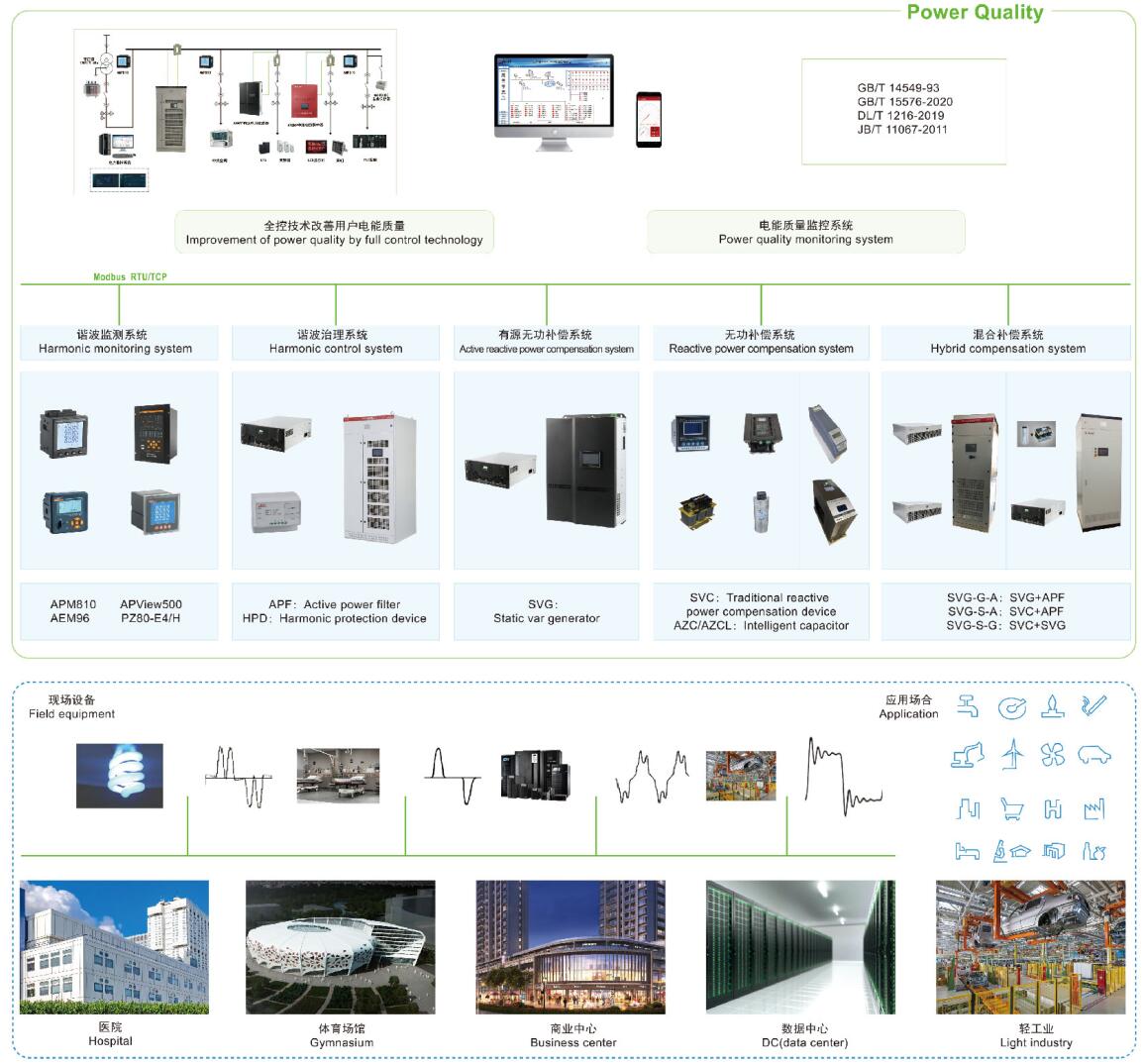 電能質(zhì)量分析與治理系統(tǒng)主要是研究消除供配電系統(tǒng)中的無(wú)功補(bǔ)償和諧波治理問(wèn)題,主要的產(chǎn)品有有源電力濾波器、低壓無(wú)功功率補(bǔ)償裝置、靜止無(wú)功發(fā)生器、混合動(dòng)態(tài)濾波補(bǔ)償裝置、混合動(dòng)態(tài)消諧補(bǔ)償裝置、智慧型動(dòng)態(tài)無(wú)功補(bǔ)償裝置、諧波保護(hù)器等,適用于新建、改建、擴(kuò)建和技改項(xiàng)目中工業(yè)與民用及公共建筑內(nèi)電氣設(shè)備的無(wú)功補(bǔ)償、諧波抑制及綜合治理等,可根據(jù)不同行業(yè)類型和負(fù)載類型的電能質(zhì)量問(wèn)題提供合適的設(shè)計(jì)解決方案,以達(dá)到改善供電質(zhì)量和確保電力系統(tǒng)安全經(jīng)濟(jì)運(yùn)行的目的。