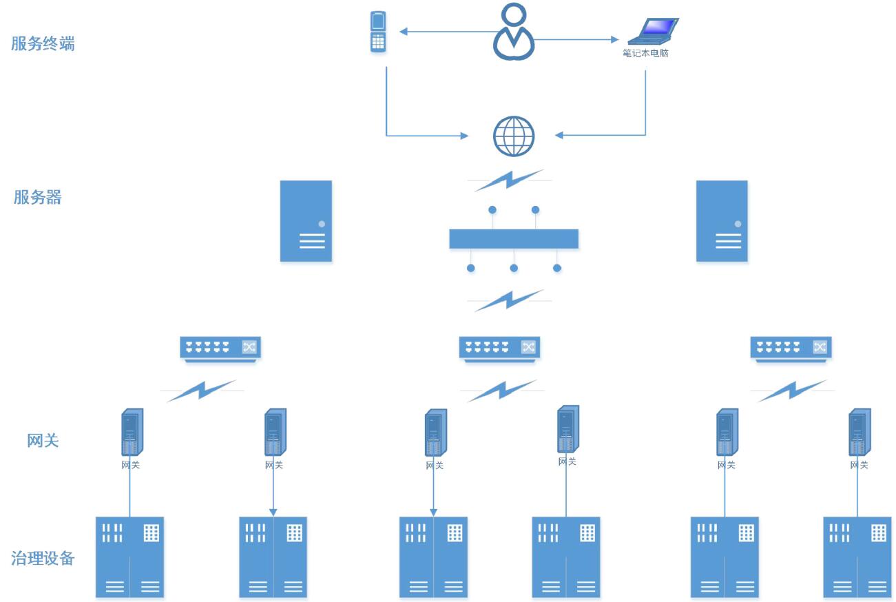 電能質(zhì)量分析與治理系統(tǒng)平臺(tái)主要由電能質(zhì)量治理設(shè)備、物理網(wǎng)關(guān)、服務(wù)器及服務(wù)終端四部分組成,其中電能質(zhì)量治理設(shè)備作為基礎(chǔ)實(shí)現(xiàn)對(duì)數(shù)據(jù)采集與電能質(zhì)量補(bǔ)償?shù)染唧w服務(wù)動(dòng)作,物理網(wǎng)關(guān)實(shí)現(xiàn)設(shè)備與服務(wù)器間的數(shù)據(jù)傳輸以及對(duì)設(shè)備進(jìn)行策略功能分配,數(shù)據(jù)經(jīng)由服務(wù)器最終以服務(wù)終端為媒介為用戶提供可視化展示。