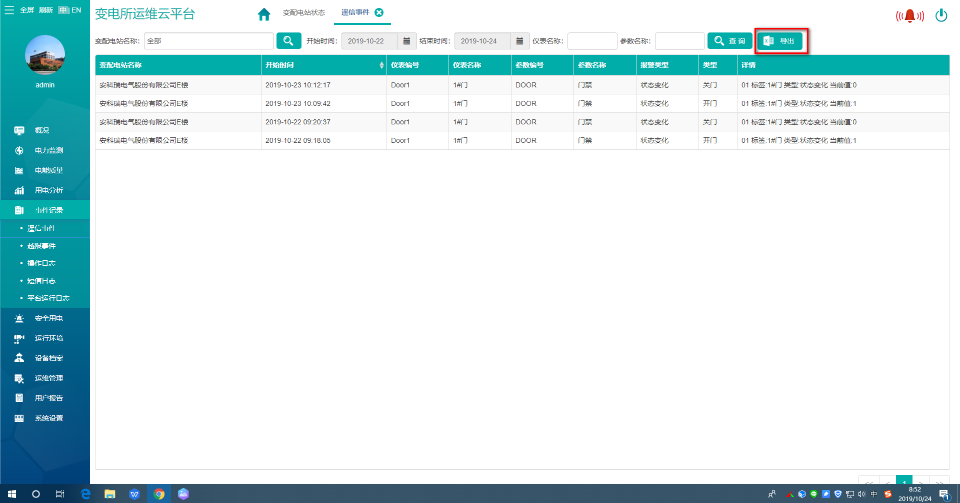 事件記錄方便運維人員查看分析設備如斷路器合分、門開門關、電流電壓越限告警、故障告警、短信志、平臺運行日志等記錄。