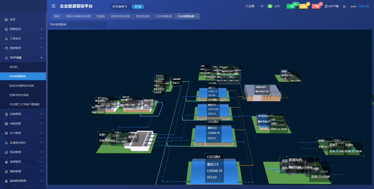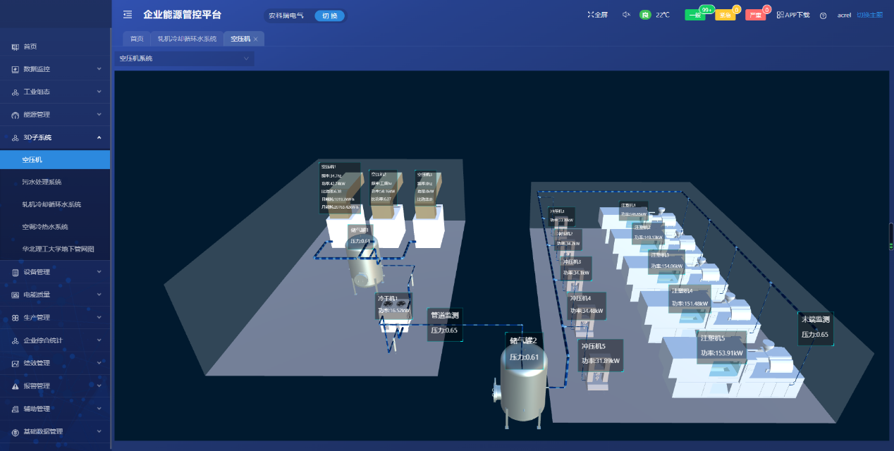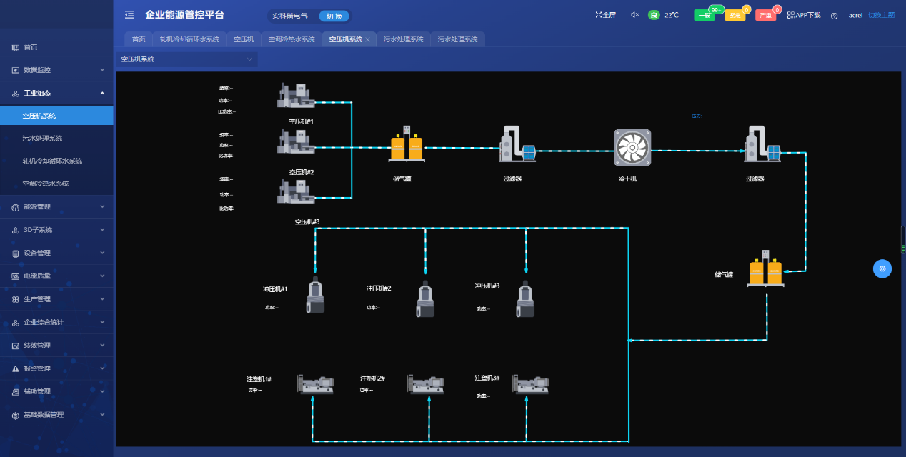 ① 搭建廠區能源管理系統的基本框架,對各個用能環節進行實時監測;