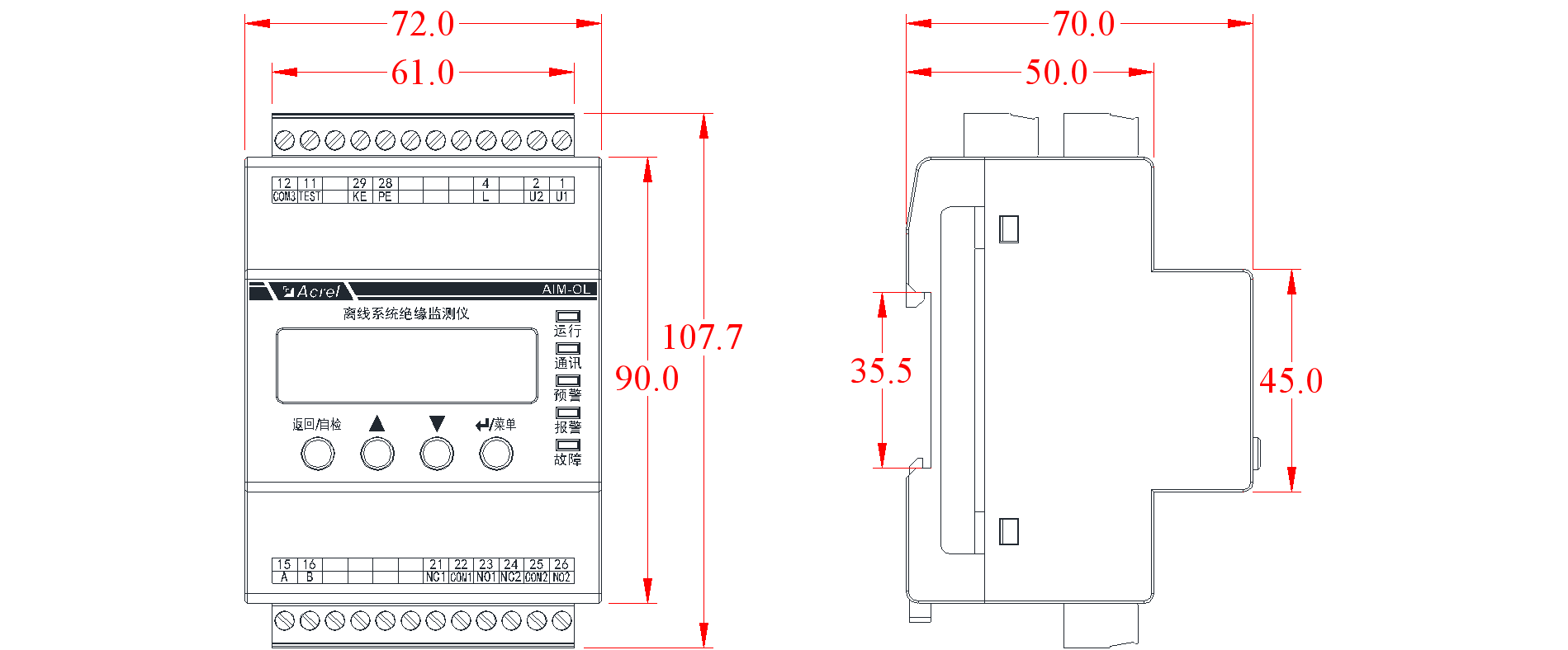 產品采用標準35mm導軌安裝,插拔端子,方便安裝和拆卸;
