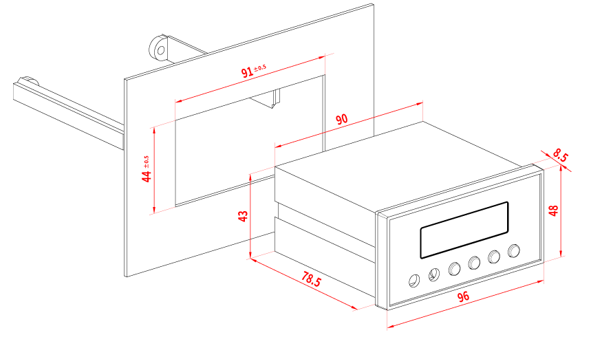 一體式設計96*48外形設計,體積小,便于安裝