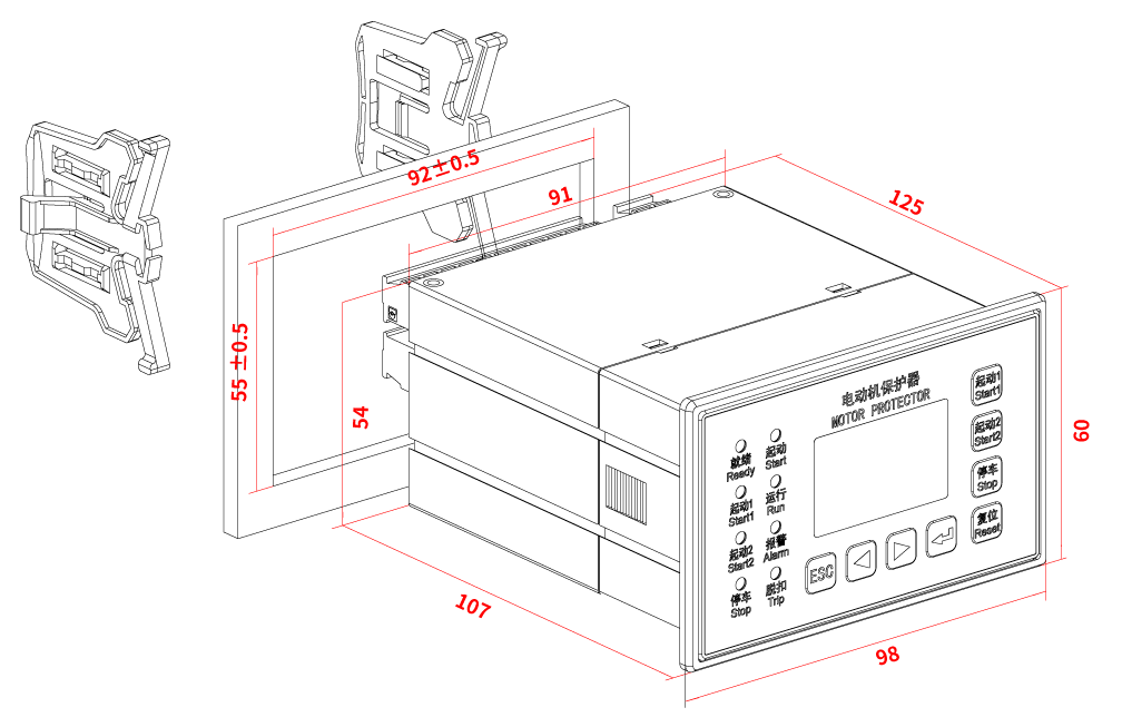 | 擴展保護 | 漏電、tE時間、溫度、相序、過欠壓、電壓不平衡、過欠功率、外部故障 | |